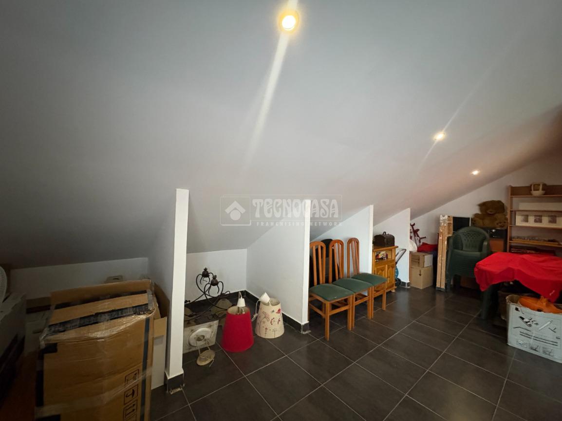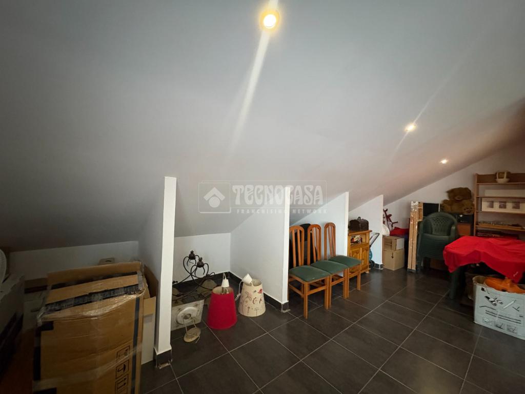 En su interior, el chalet dispone de cuatro dormitorios amplios, ideales para familias o para quienes necesitan un espacio de trabajo en casa. Cuenta con dos baños completos y un aseo, distribuidos para garantizar comodidad y practicidad. Además, el salón cuenta con aire acondicionado, aportando confort durante todo el año. La propiedad incluye también una buhardilla, perfecta como zona de ocio, estudio, almacenamiento adicional o incluso como un dormitorio adicional.